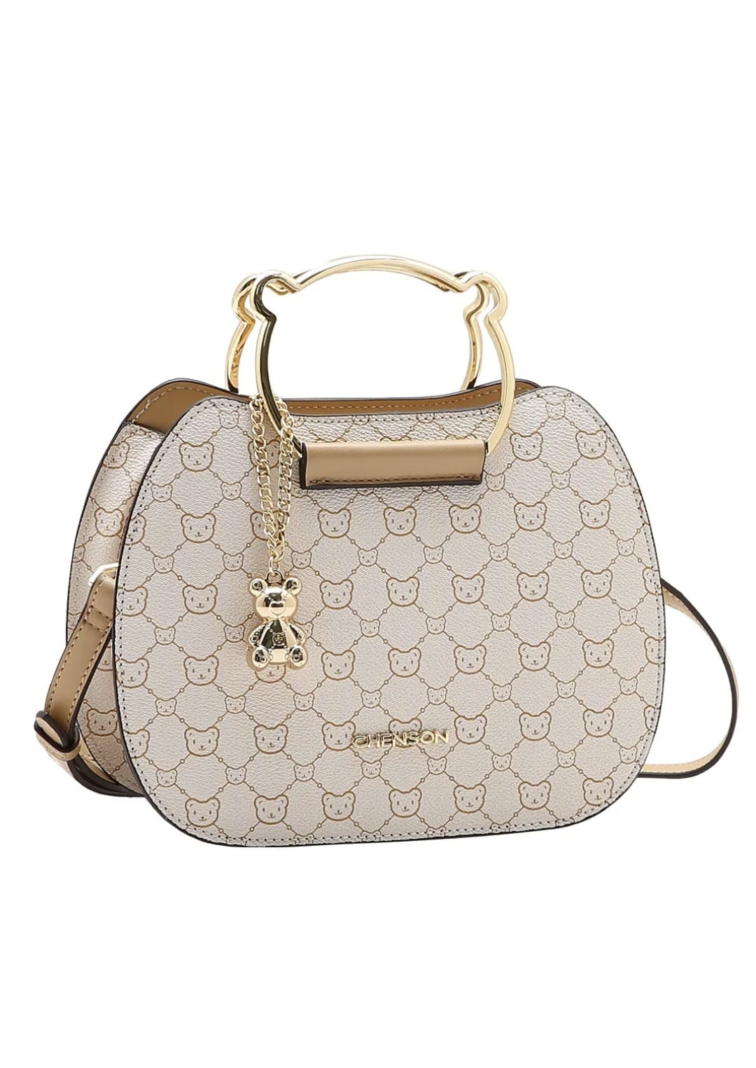 A Bolsa Feminina Chenson Mão Baby Urso encanta pelo design delicado e sofisticado, ideal para quem busca estilo e praticidade no dia a dia. Confeccionada em material sintético de alta qualidade, apresenta estampa monograma exclusiva com o clássico ursinho Chenson, além de acabamento refinado e ferragens metálicas douradas. O modelo conta com elegante alça de mão em metal com formato de urso, que agrega charme e personalidade ao visual. Possui fechamento em zíper, garantindo segurança aos pertences, e interior funcional com divisórias internas e bolsos para pequenos objetos, proporcionando melhor organização dos itens essenciais. Acompanha chaveiro ursinho metálico, que valoriza ainda mais o design, além de alça transversal ajustável e removível, permitindo diferentes formas de uso. Um acessório compacto, moderno e perfeito para passeios, compromissos casuais ou ocasiões especiais.