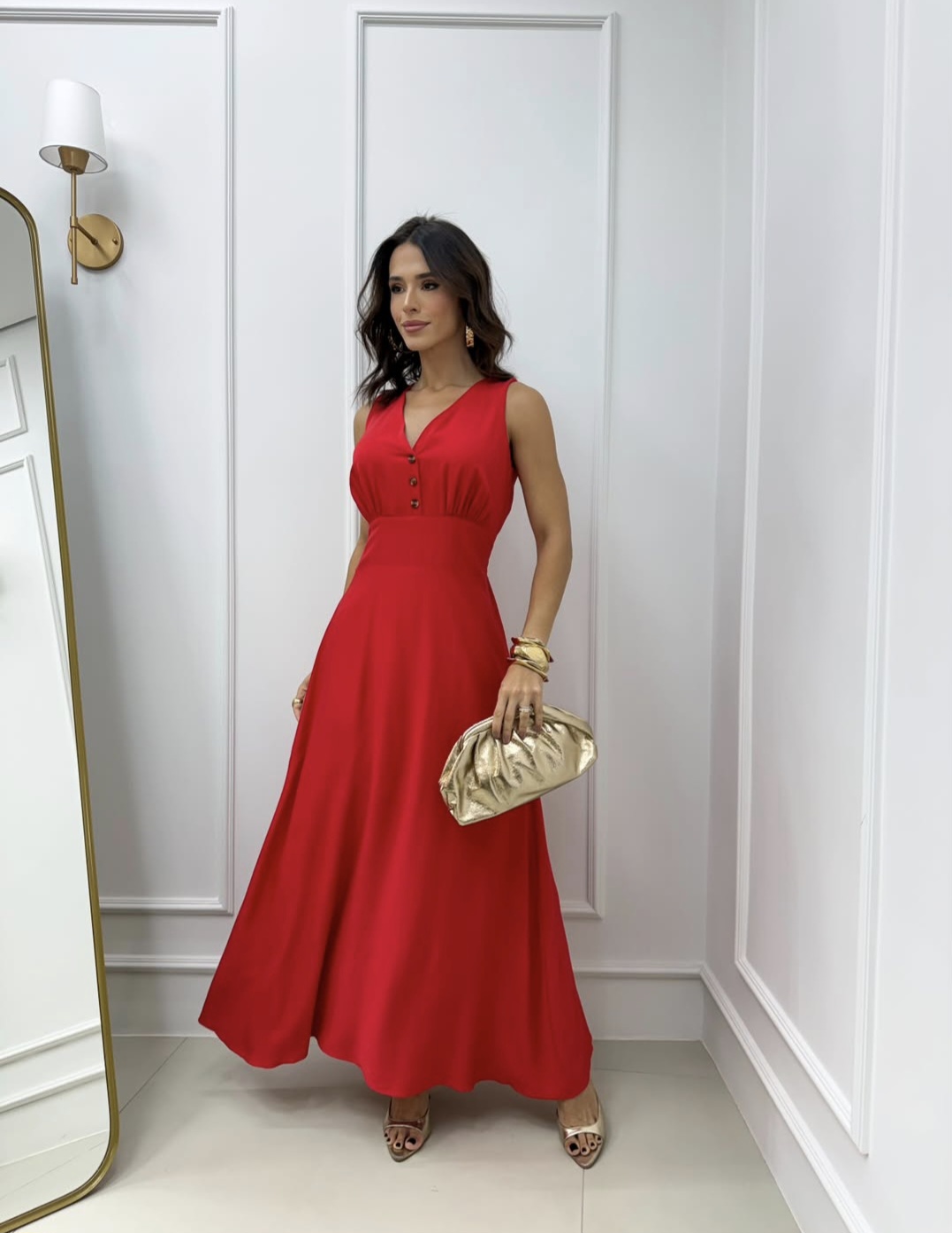 O Vestido Longo Decote V com Elastex nas Costas é perfeito para quem busca conforto e estilo em uma peça só. Fabricado em tecido viscolinho leve e fluido, proporciona caimento elegante e liberdade de movimento. O decote V valoriza o colo, enquanto o elastex na parte traseira garante ajuste perfeito ao corpo sem apertar, realçando a silhueta de forma natural. Ideal para ocasiões especiais, festas e eventos sociais, é uma peça versátil que alia feminilidade e funcionalidade. A peça conta com botões frontais decorativos, adicionando charme ao design clássico. Disponível em tamanho único que se adapta ao corpo graças à elasticidade do elastex.